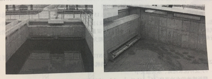 翻板閥濾池的配水系統(tǒng)屬于中(小)阻力配水系統(tǒng),采用獨(dú)特的上下雙層配氣配水層形 式,由橫向配水管、豎向配水管和豎向配氣管組成。這種獨(dú)特的結(jié)構(gòu)特點(diǎn)使得翻板閥濾池獲 得較其它類型濾池更均勻的配水配氣性能。 翻板閥濾池的反沖洗方式也與其它類型氣水反沖洗濾池不同,翻板閥濾池采用閉閥沖洗 方式,沖洗過程分為氣沖+氣水聯(lián)沖+水沖、單獨(dú)水沖兩大階段,無(wú)論水沖、氣沖時(shí)都不 向外排水,一個(gè)反沖洗階段結(jié)束后,靜止數(shù)十秒后再排水。因此翻板閥濾池基本不會(huì)出現(xiàn)濾料流失現(xiàn)象。